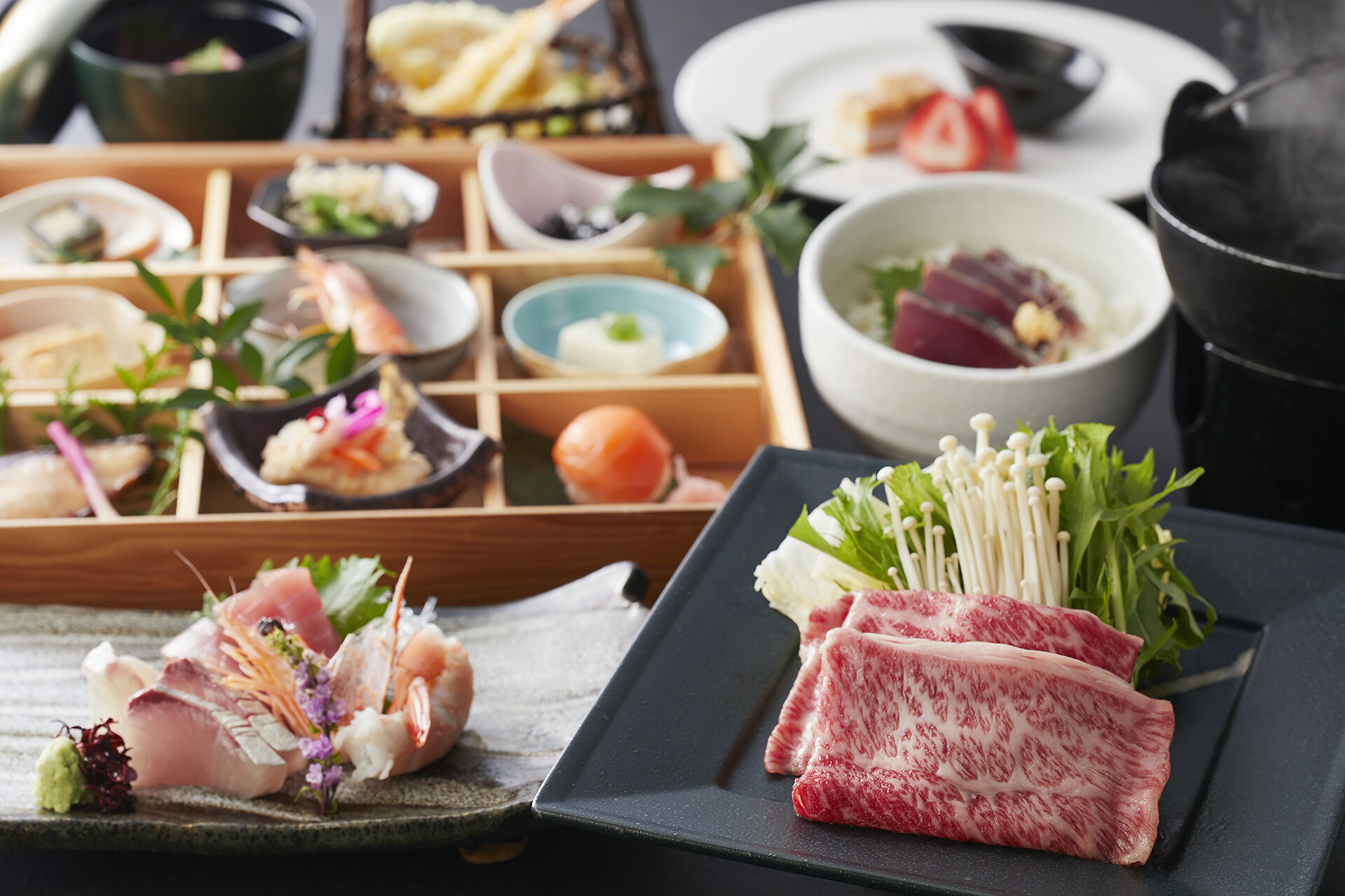 松阪牛と地元特産の素材を贅沢に使用した全7皿の会席料理。厳選素材を使用した料理長こだわりの会席をご賞味ください。