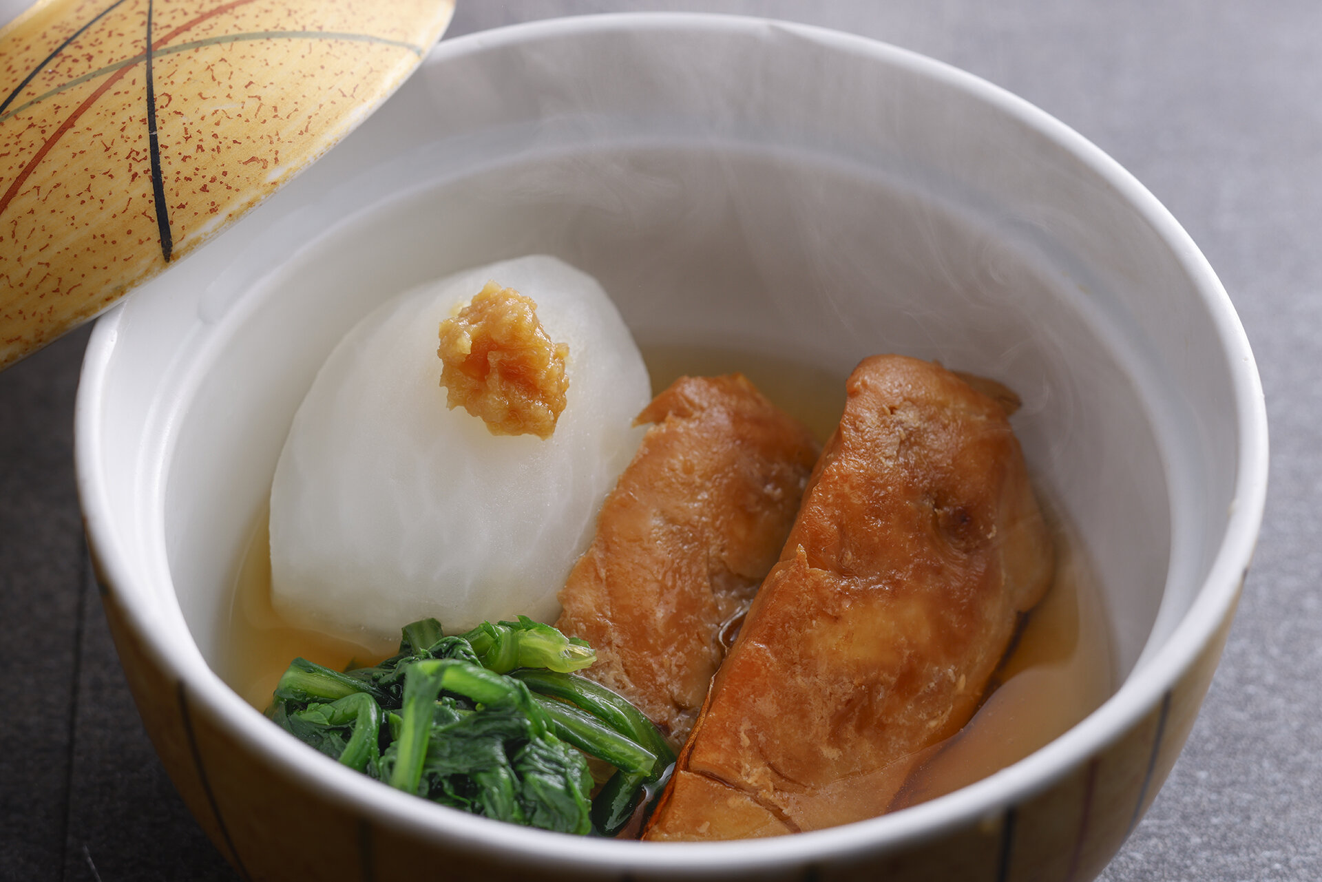 飛騨牛の炙り寿司がついた豪華会席料理。飛騨牛を使用した一味鍋は、一口食べれば口の中いっぱいに肉の旨みが広がります。大好評の香味味噌茶漬けは、ピリッとした味噌の味が食欲を引き立てます。