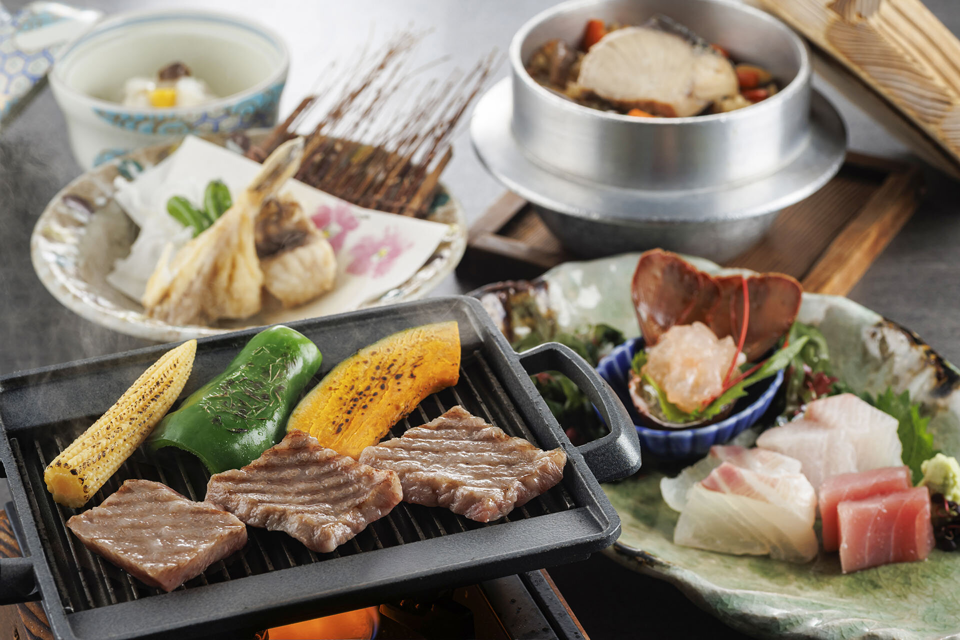 伊勢志摩の海の幸と松阪牛の鉄板焼きを揃えた和会席をご堪能ください。