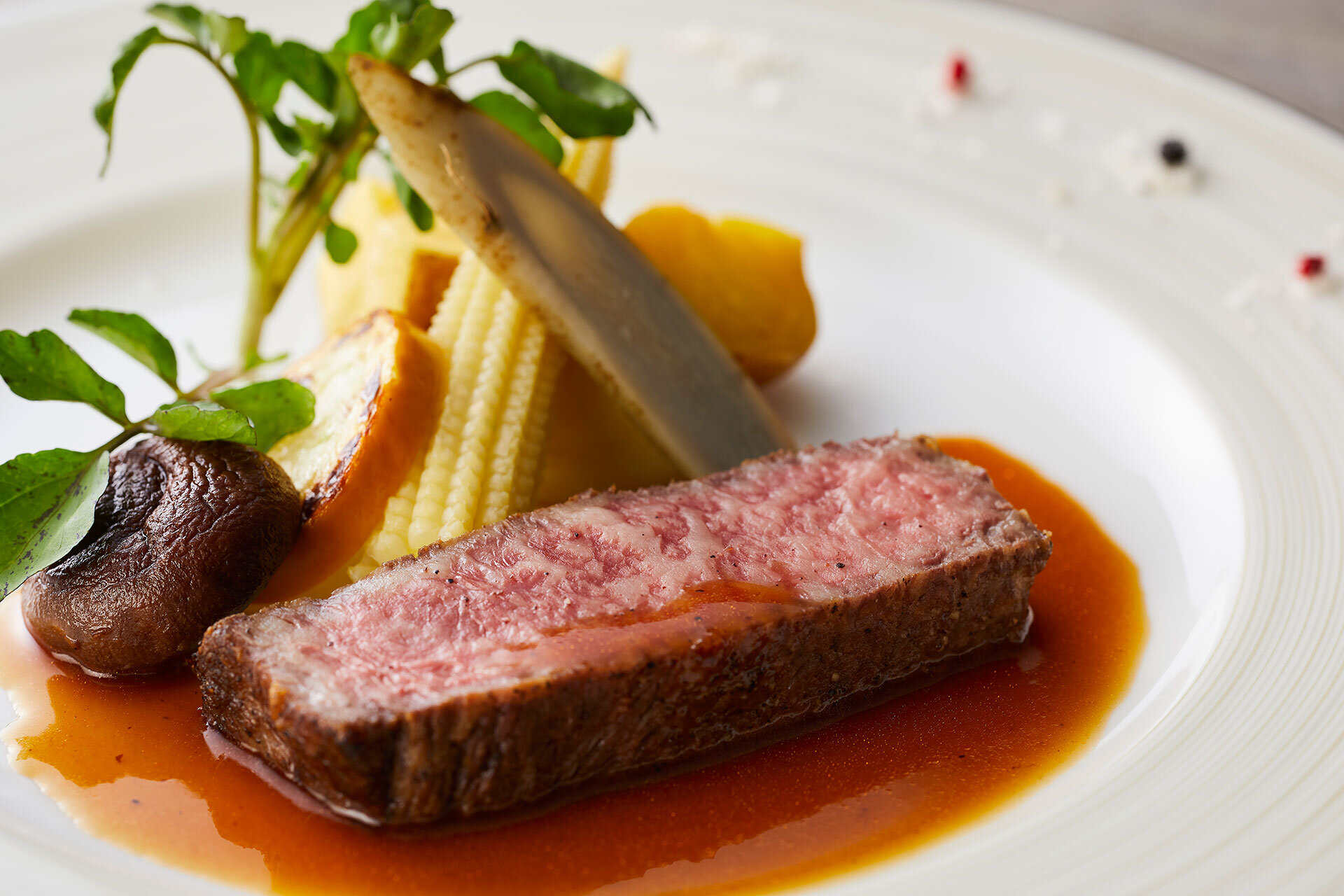 厳選食材を使用した贅沢なフレンチコースは、 やわらかく希少価値の高い黒毛和牛をはじめ、新鮮な食材を豪華にお召し上がりいただけます。