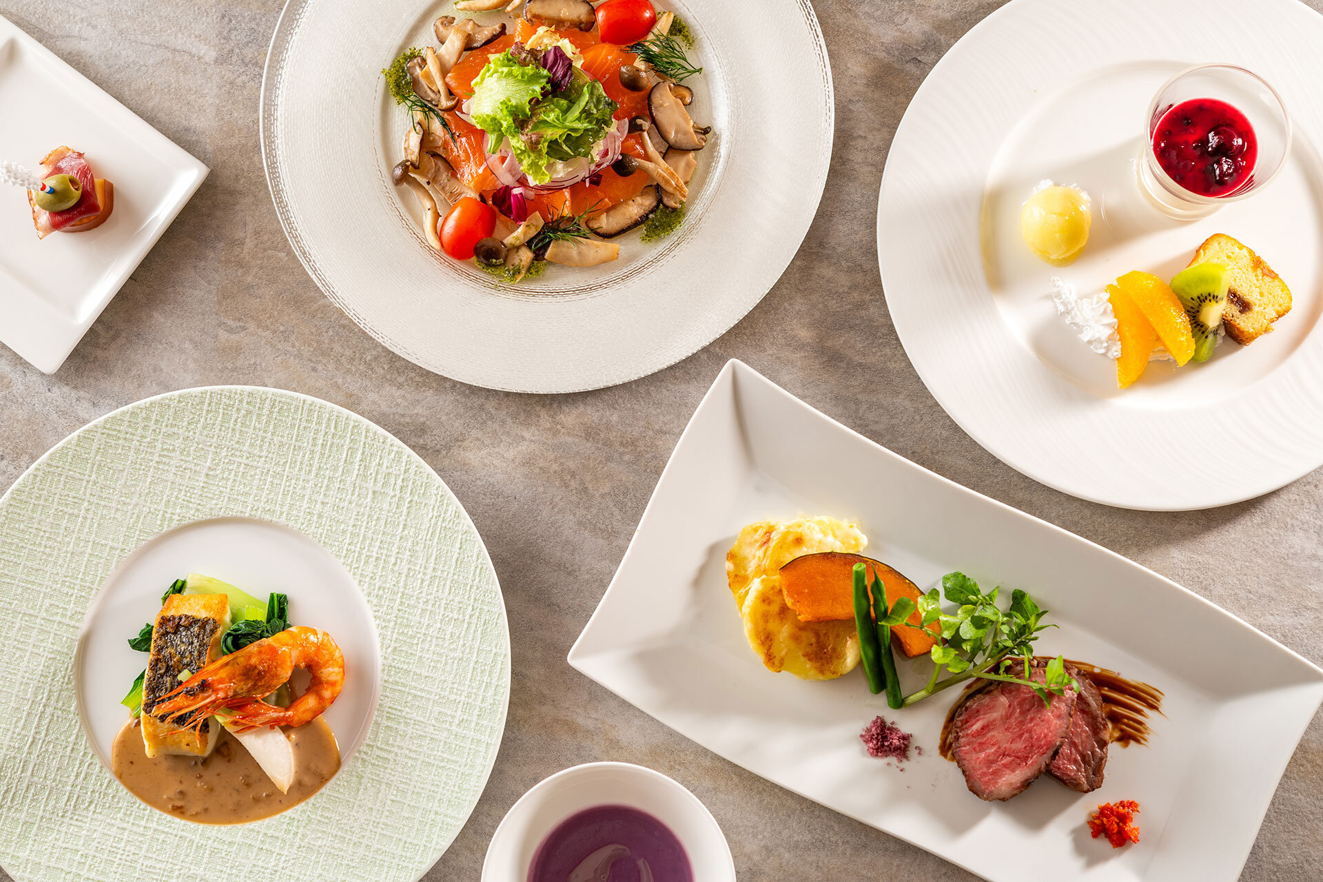 南アルプスを望むフレンチレストランでは、八ヶ岳高原の食材を使用した本格フレンチをご堪能いただけます。わんちゃんメニューもご用意しておりますので、愛犬と共にお食事をお楽しみください。