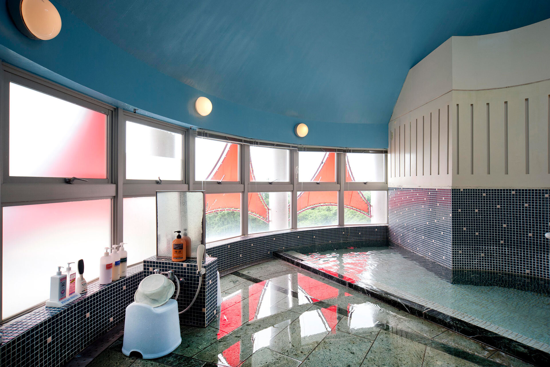 温泉は伊東市赤沢対島温泉を引湯。広々と落ち着いた雰囲気の癒し空間。温泉大浴場やドライサウナで旅の疲れをお癒しください。愛犬と入れる貸切風呂のご用意もございます。