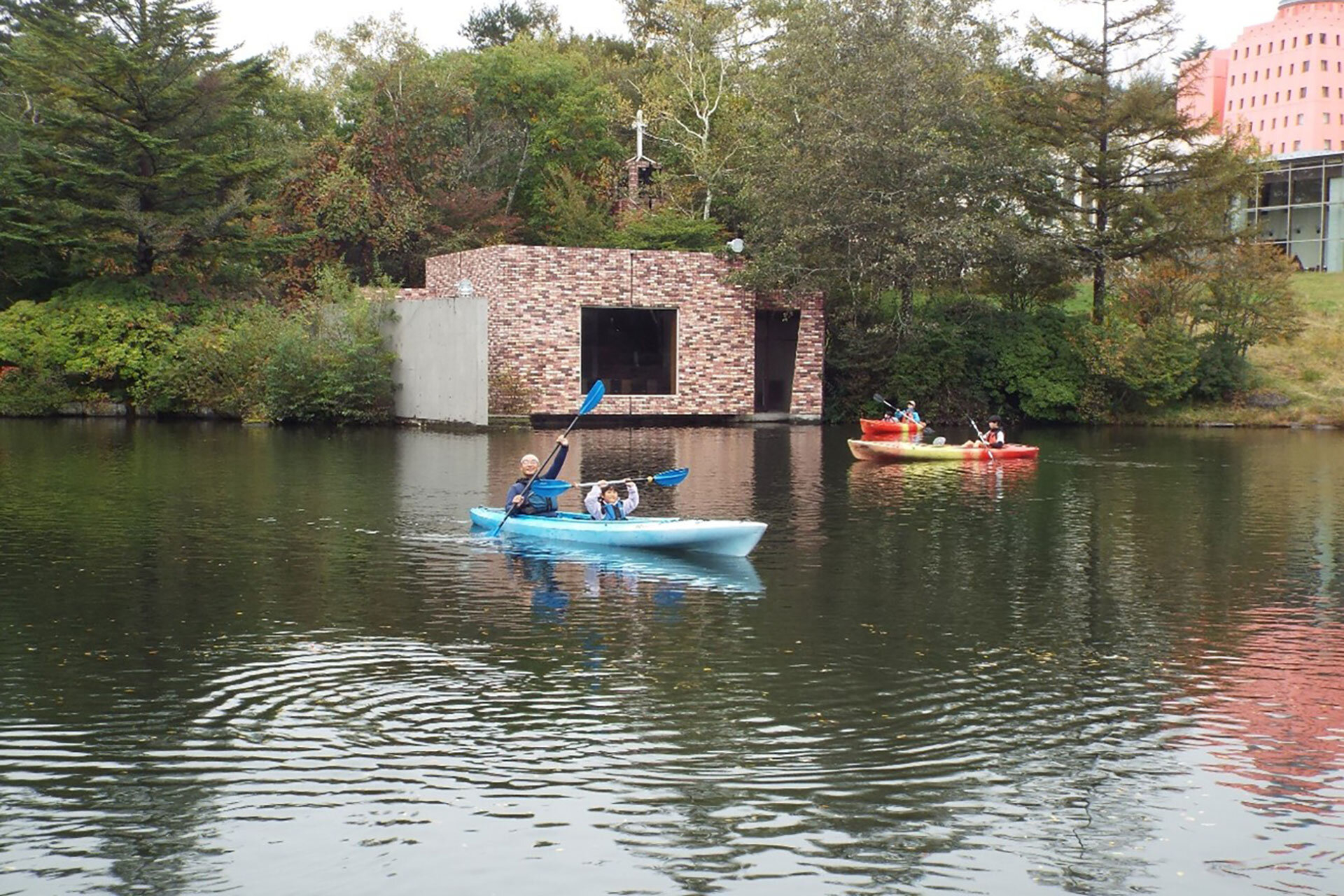 標高1,450mの高地にある清里高原ホテルの目の前には、八ヶ岳からの湧水が溜まってできた「からまつ湖」があり、湖面にカヤックを浮かべてのんびりとカヤック体験を満喫していただけます。