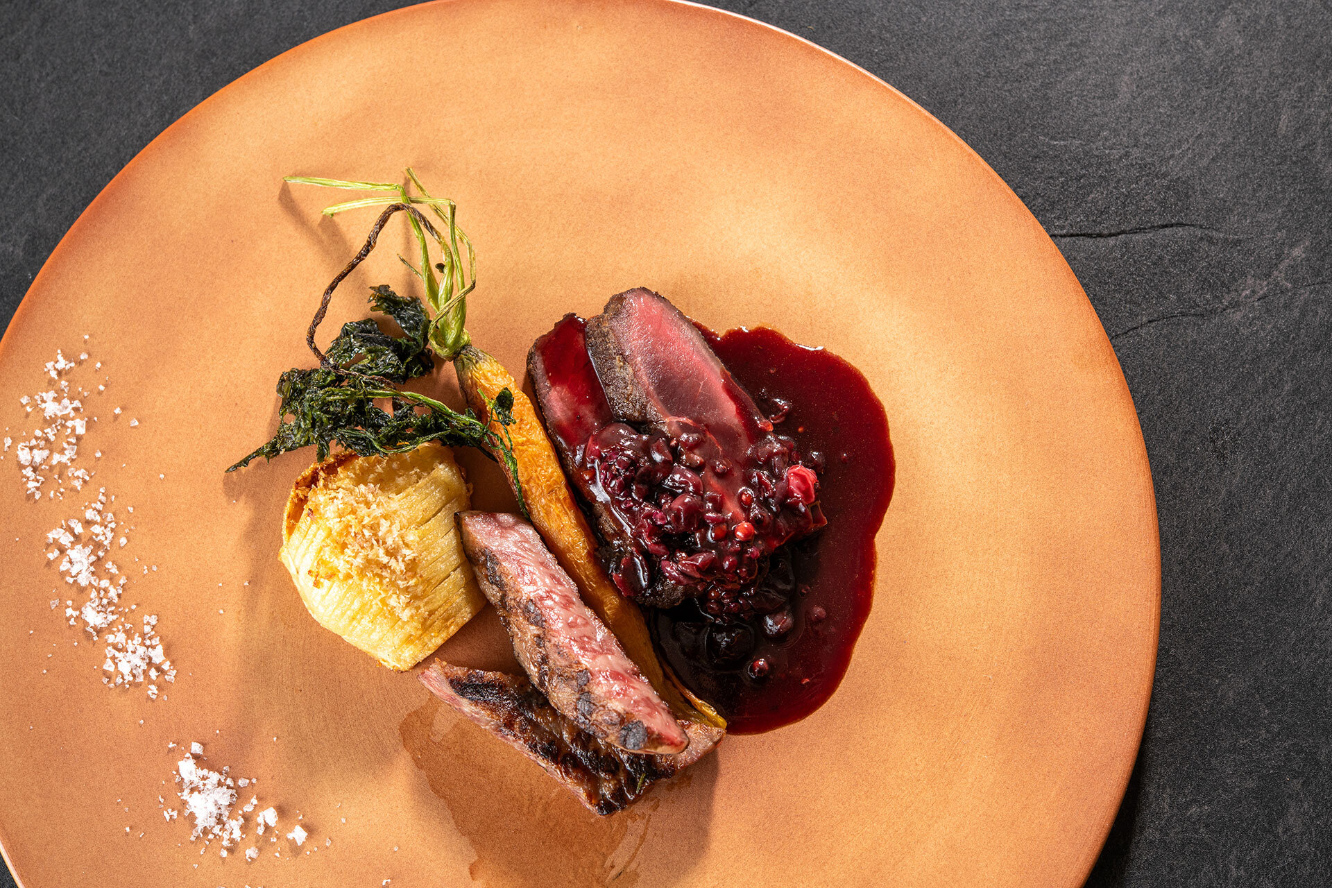 そしてメインディッシュでは鹿肉と和牛の贅沢な食べ比べ、または信州の極上豚肉を、素材の味を最大限に引き出す手法でご提供。