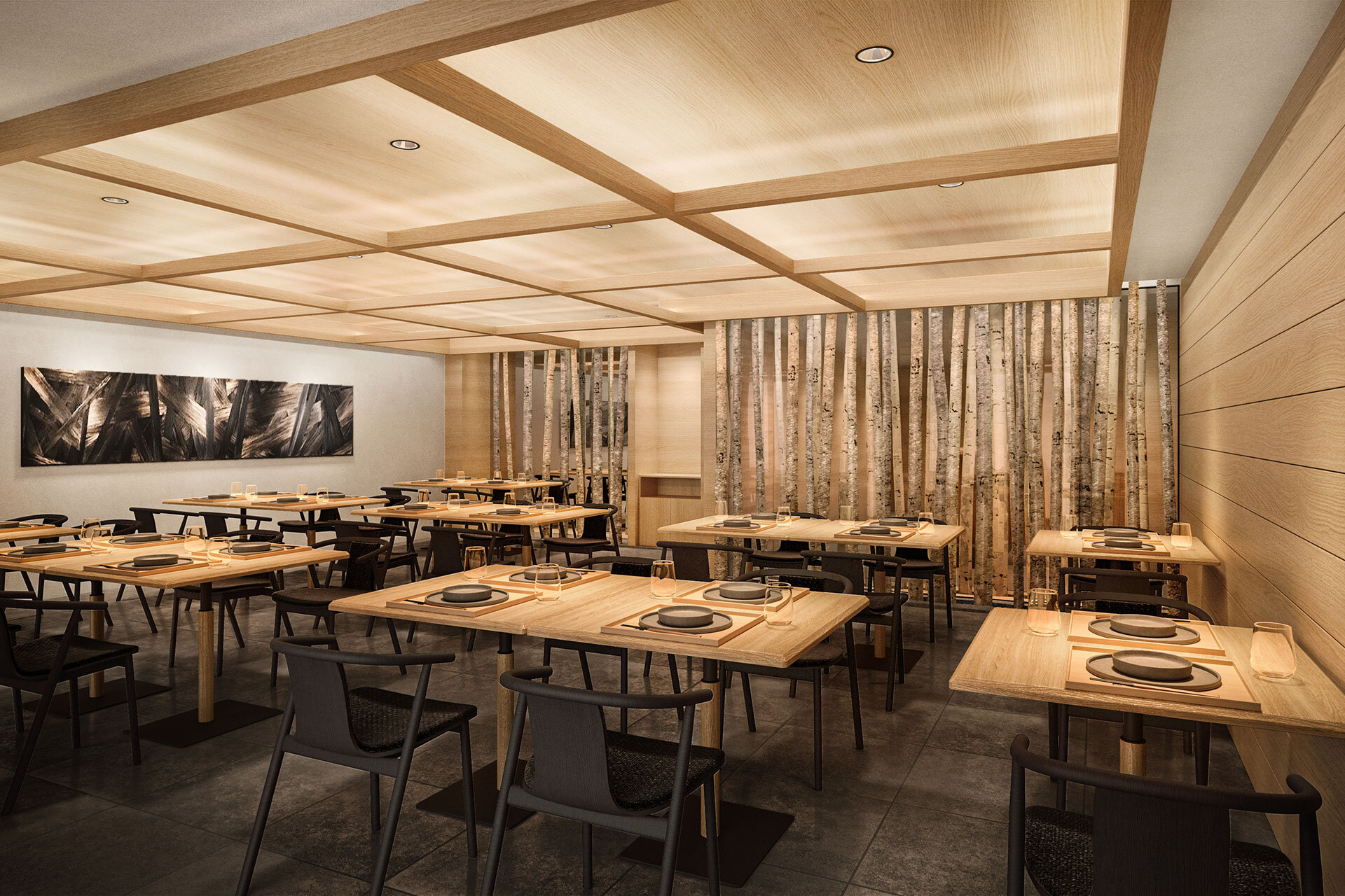 蓼科の森に抱かれ、北欧の温もりと和の静謐な美が心地よく調和した空間。