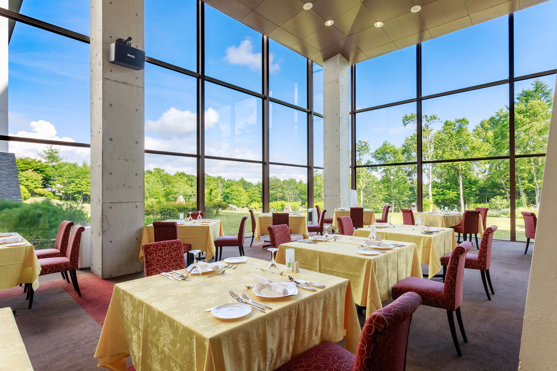 中庭のからまつ湖を目の前に、季節感あふれるおいしさをご用意しています。シェフ自慢の本格フレンチをぜひご堪能ください。