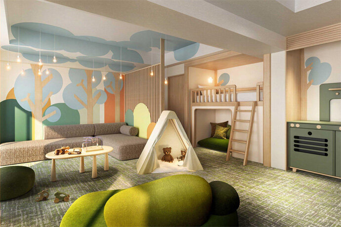 「まるで森の中の隠れ家。知育と遊び心の部屋」のデラックスキッズルームは、木調の家具に囲まれたナチュラルな空間に、テントや知育玩具をご用意。「女神湖畔のテントで過ごすような非日常」のデラックスツインは、落ち着きのあるアースカラーで統一され、蓼科の自然に溶け込むような滞在をお楽しみいただけます。