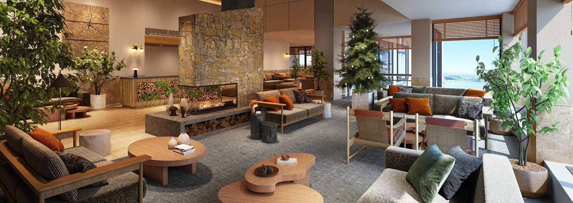 ロビーは窓の外の自然と一体になれる開放的なラウンジ空間へと生まれ変わります。北欧の精神が大切にする心地よさ、居心地の良さ、安らぎを追求。焚き火のやわらかな炎と温もりが、旅の疲れをじんわりと癒やします。また、大浴場にはサウナの本場、フィンランドや北欧のスタイルを意識したサウナを新設いたします。